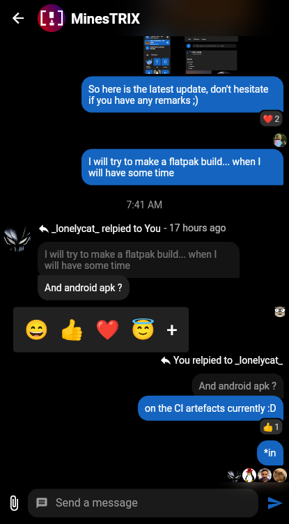 Please leave feedback/comments at #quadrix:matrix.org or in the issues at https://github.com/alariej/quadrix (stars welcome :-))
